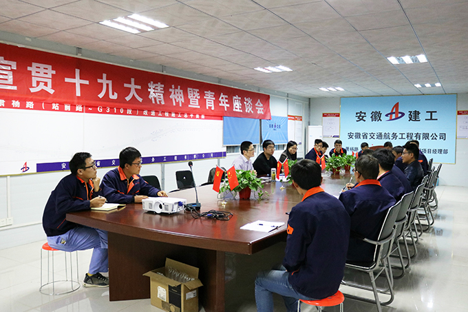 黨的十九大閉幕以來(lái),安徽交航上下認(rèn)真學(xué)習(xí)宣傳貫徹黨的十九大精神,創(chuàng)新形式、豐富載體,推動(dòng)十九大精神進(jìn)機(jī)關(guān)、進(jìn)項(xiàng)目、進(jìn)車(chē)間、進(jìn)班組,使十九大精神入耳、入腦、入心、入行。