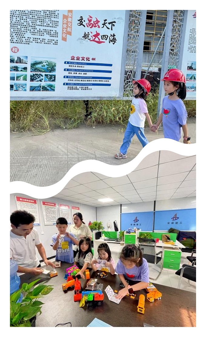 本次活動以“交流話夢想”形式拉開序幕,小朋友們收到了項目部精心準備的“小候鳥”學習用品禮包,在自我介紹中暢享未來許下“童心愿望”,在益智活動中動手拼裝工程車輛模型,享受親情溫暖、收獲友情歡樂?;顒硬粌H讓孩子們玩得盡興,更將寓教于樂進行到底。在父母的帶領下,孩子們迎來工地“初體驗”,孩子們帶上安全帽,參觀項目參觀了辦公區(qū)、生活區(qū)以及施工現(xiàn)場,學習項目建設的知識和安全常識,陪爸爸媽媽吃一頓工作餐,“零距離”體驗父母的日常工作、生活的環(huán)境,體會父母工作的艱辛和不易。