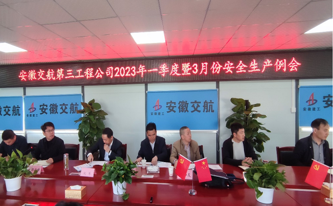 3月10日上午,第三工程公司在青海路項目部召開2023年一季度暨3月份安全生產例會,公司黨委副書記、總經理杜海峰出席會議并講話。會議由第三工程公司黨支部書記、副總經理顏海峰主持。